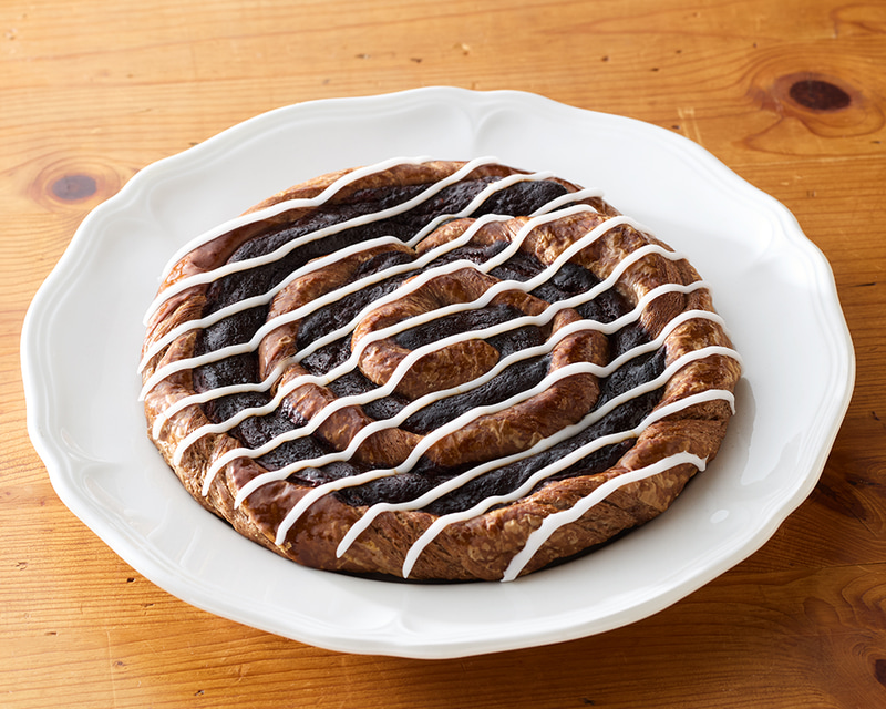 うずまき状チョコ風味デニッシュ生地にチョコ風味ケーキフィリングを絞って焼き上げ、アイシングを線状にかけて526kcal! 山崎製パンがチョコ好きにはたまらない「ミニスナックゴールド(ショコラ)」を発売