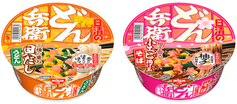 あさり・はまぐり・ほたての貝だしや、高知県産柚子皮の香り爽やかな気持ち華やぐ“春どん兵衛”が登場! 「日清のどん兵衛 三種の重ね貝だしうどん/柚子香る小エビ揚げ玉そば」が季節限定発売