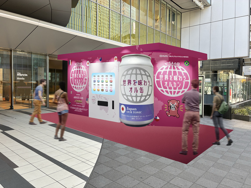 全世界株式に投資する「オルカン」が缶ジュース「オル缶」に!? 無料で代表国をイメージした10種の「オル缶」が自販機から出てくる!