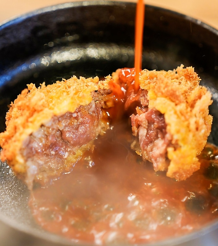 開店から9日間は33%OFF! メニューは厳選和牛100%極上メンチカツ3個+おかわり無料のご飯・オニオンスープ・キャベツの定食のみ! 串カツ田中の新ブランド「挽きたて和牛レアカツ ザ・メンチ」が本日7日(土)開店