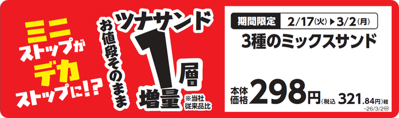 ミニストップがデカストップに!? お値段そのまま「にぎり寿司」「Xフライドポテト」「Wモンブランプリン」が1.5倍! 「わかめごはん」ご飯量2倍増量! ミニストップが「増量フェア」を明日17日(火)から開催