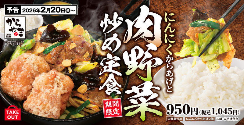 主役級おかずを一度に味わう! からあげ定食専門店「からやま」が「にんにくからあげと肉野菜炒め定食」を発売~どちらにするか迷う日もからやまなら一度で楽しめる!