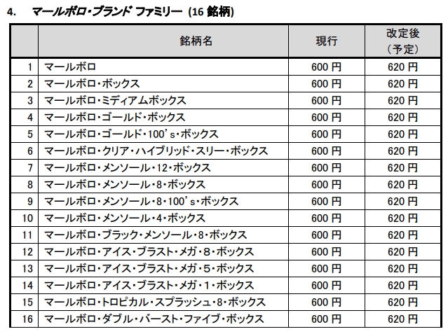 「マールボロ」は620円に! フィリップ モリスの加熱式たばこと紙巻たばこ66銘柄の値上げ申請を財務省が認可