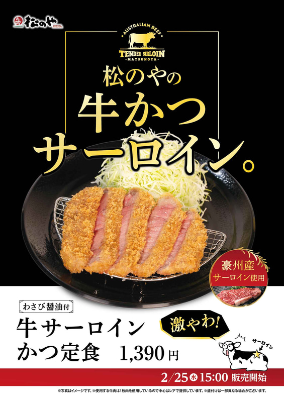 豪州産の牛の王様「サーロイン」を1枚肉で贅沢に! 松のやが税込1,390円の「牛サーロインかつ定食」を発売~松のやの技術で引き出す「しっとりやわらか」食感の自信作! 株主優待券を使用可能