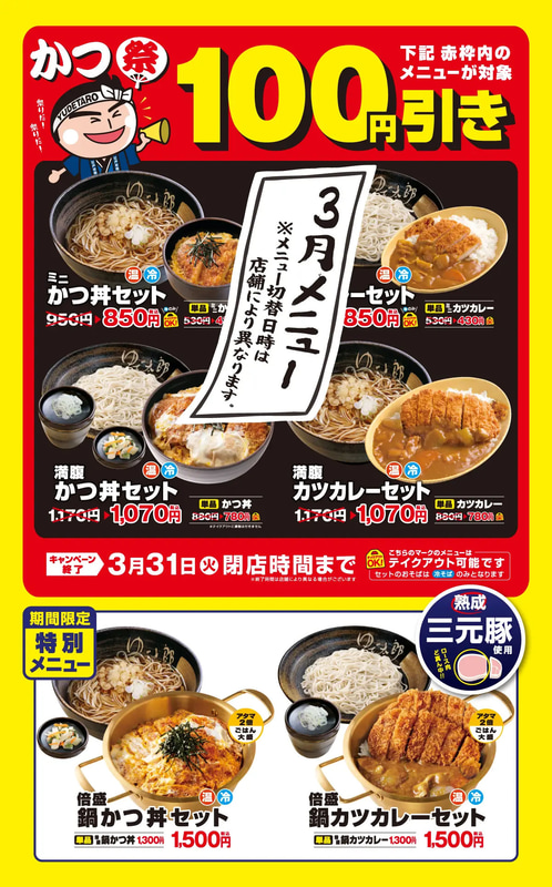「ミニかつ丼」が税込430円! ゆで太郎が「かつ丼」「カツカレー」のセットや単品が税込100円引きの「かつ祭」を3月に開催~1kg超えの特別メニュー「倍盛 鍋かつ丼」「倍盛 鍋カツカレー」も復活