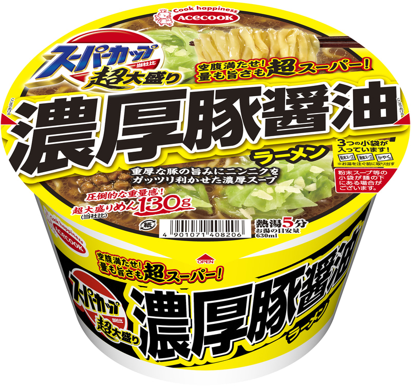 めん130gでスーパーカップ史上最高の食べごたえ! こだわり濃厚スープと具材がしっかり絡む「超大盛り 横浜家系豚骨醤油ラーメン/濃厚豚醤油ラーメン」リニューアル、「魚介豚骨醤油ラーメン」新発売