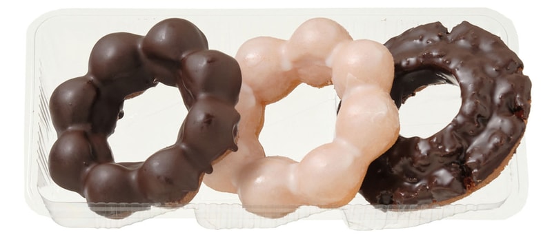 チョコオールドファッション、もちもちリングシュガー、もちもち食感リングドーナツチョコがセットで1,054kcal、税込354円! セブン‐イレブンが「アソートドーナツ 3個入り」を発売
