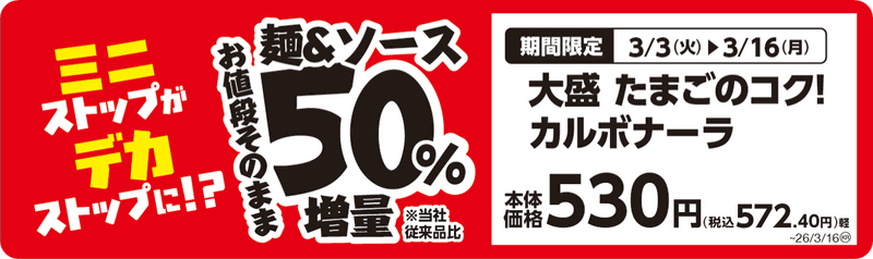 「大盛 たまごのコク!カルボナーラ」通常 イメージ