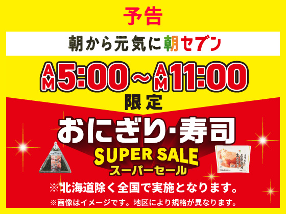 税込193円までのおにぎり・寿司が税込108円に! 最大171円お得なモーニング! セブン‐イレブンが「朝から元気に朝セブン AM5:00~AM11:00限定 おにぎり・寿司スーパーセール」を明日5日(木)から開催