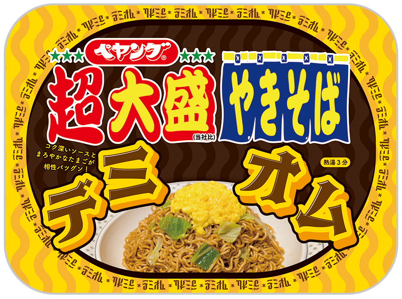 デミグラスオムライスを再現したペヤングは1,117kcalの超大盛! 「ペヤング 超大盛デミオムやきそば」が本日16日(月)発売~コク深いデミグラスソースと、フワフワのたまごがよく絡み、キャベツも入ってる!