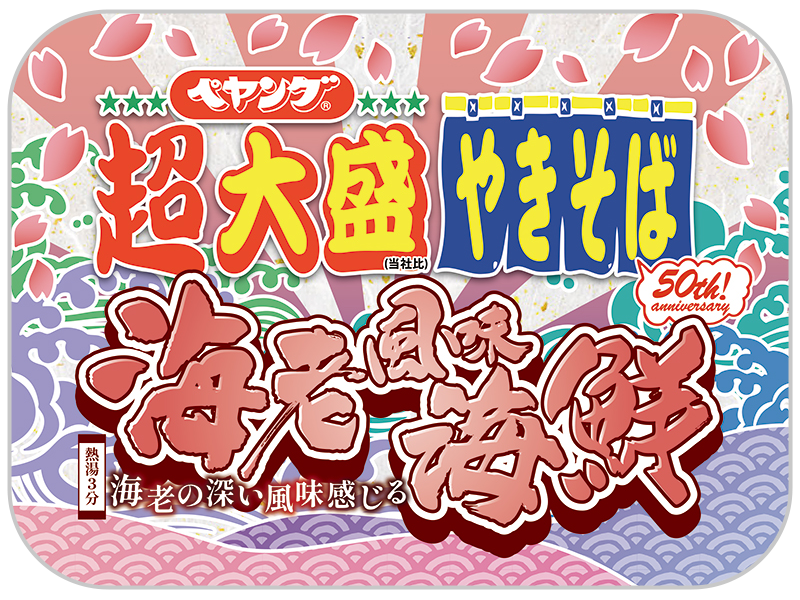香ばしい海老の風味で春を楽しめる海鮮の旨味をぎゅっと詰め込んだソースにカニ風味かまぼこ、キャベツ、イカが入って1,000kcal超え! 「ペヤング 超大盛海老風味海鮮やきそば」が本日23日(月)発売