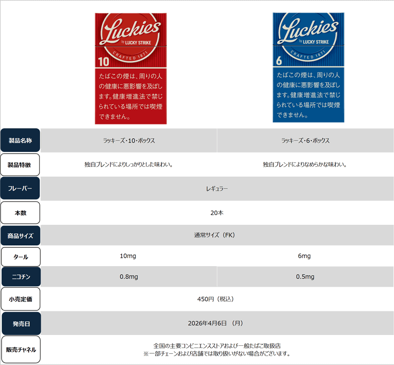20本税込450円の親しみやすい価格帯! 紙巻たばこラッキー・ストライクの新シリーズ「ラッキーズ・10・ボックス」「ラッキーズ・6・ボックス」が登場~スマートなデザインも追求