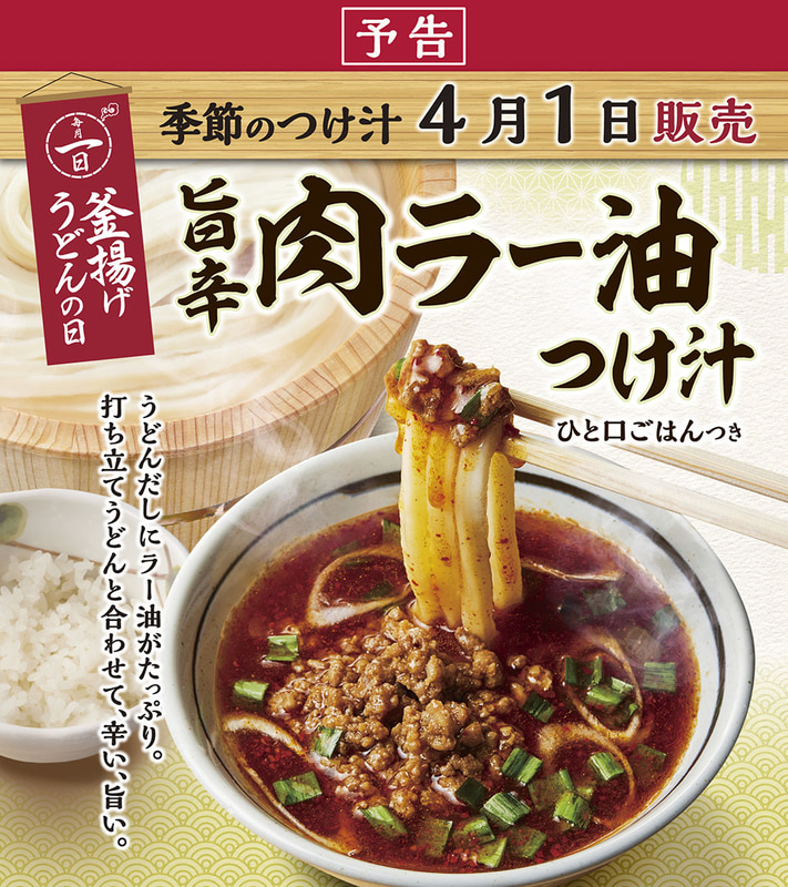 丸亀製麺の「釜揚げうどん」が半額で税込190円! 得サイズは390円お得な税込380円! 「釜揚げうどんの日」が明日1日(水)開催~「旨辛 肉ラー油つけ汁」も数量限定で販売